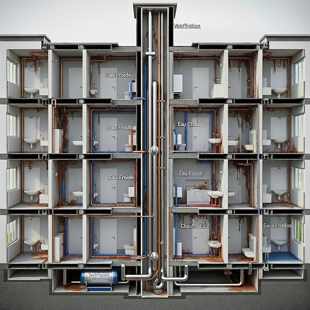 Techliquid protection des Installation de l’ensemble du réseau de canalisation d’Eau Froide Générale EFG et Eau Chaude Sanitaire ECS